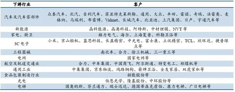 目前汽车行业仍为国内外工业机器人供应商下游主要的应用领域;其中海外品牌下游主要应用于汽车整车,国内品牌主要提供冲压、焊接、喷涂、包装等汽车行业细分领域的机器人产品。